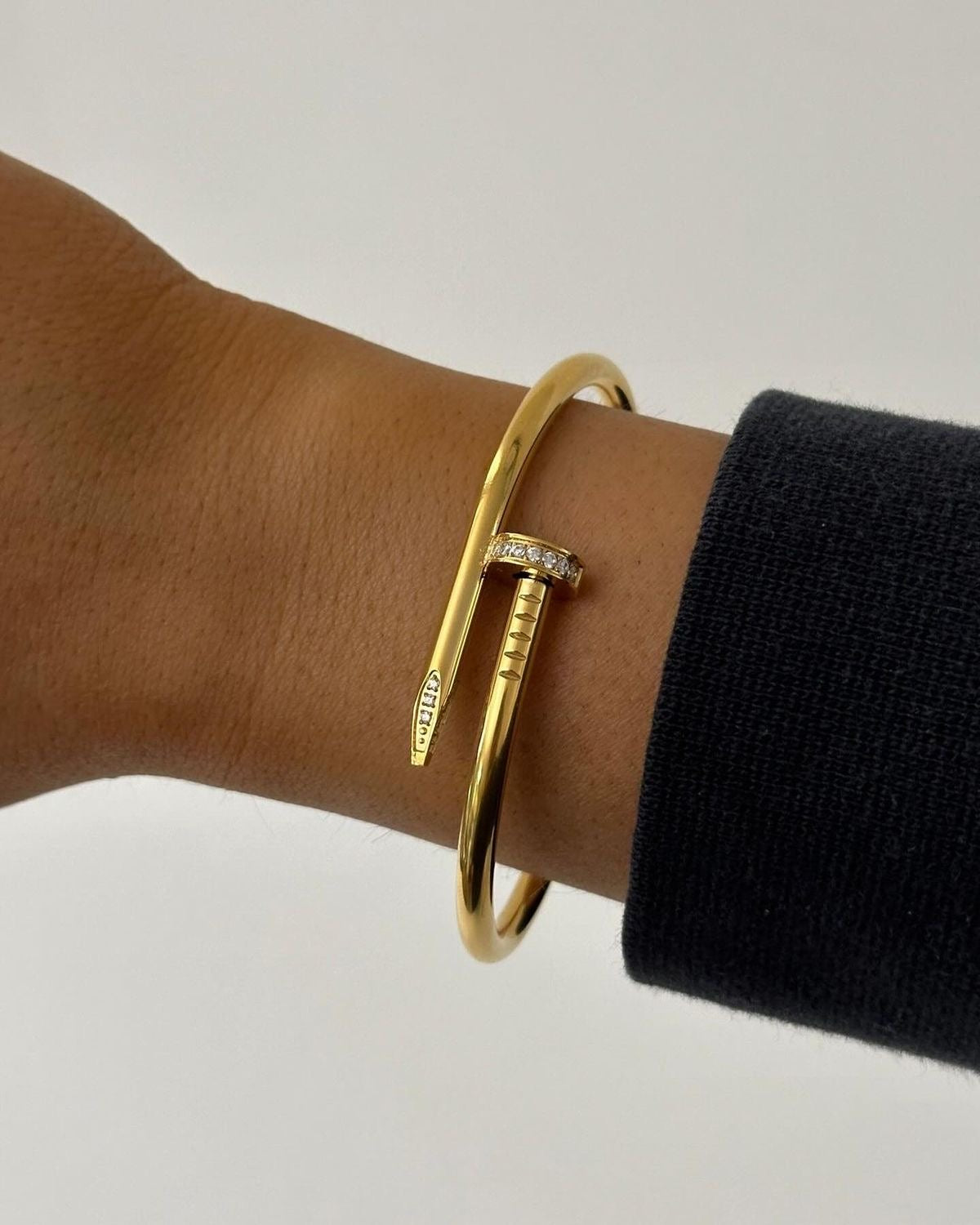 Brățară tip cui cu design minimalist și elegant, definită de o linie curată și detalii fine cu zirconiu. O piesă modernă, ușor de purtat zilnic sau în combinații sofisticate.